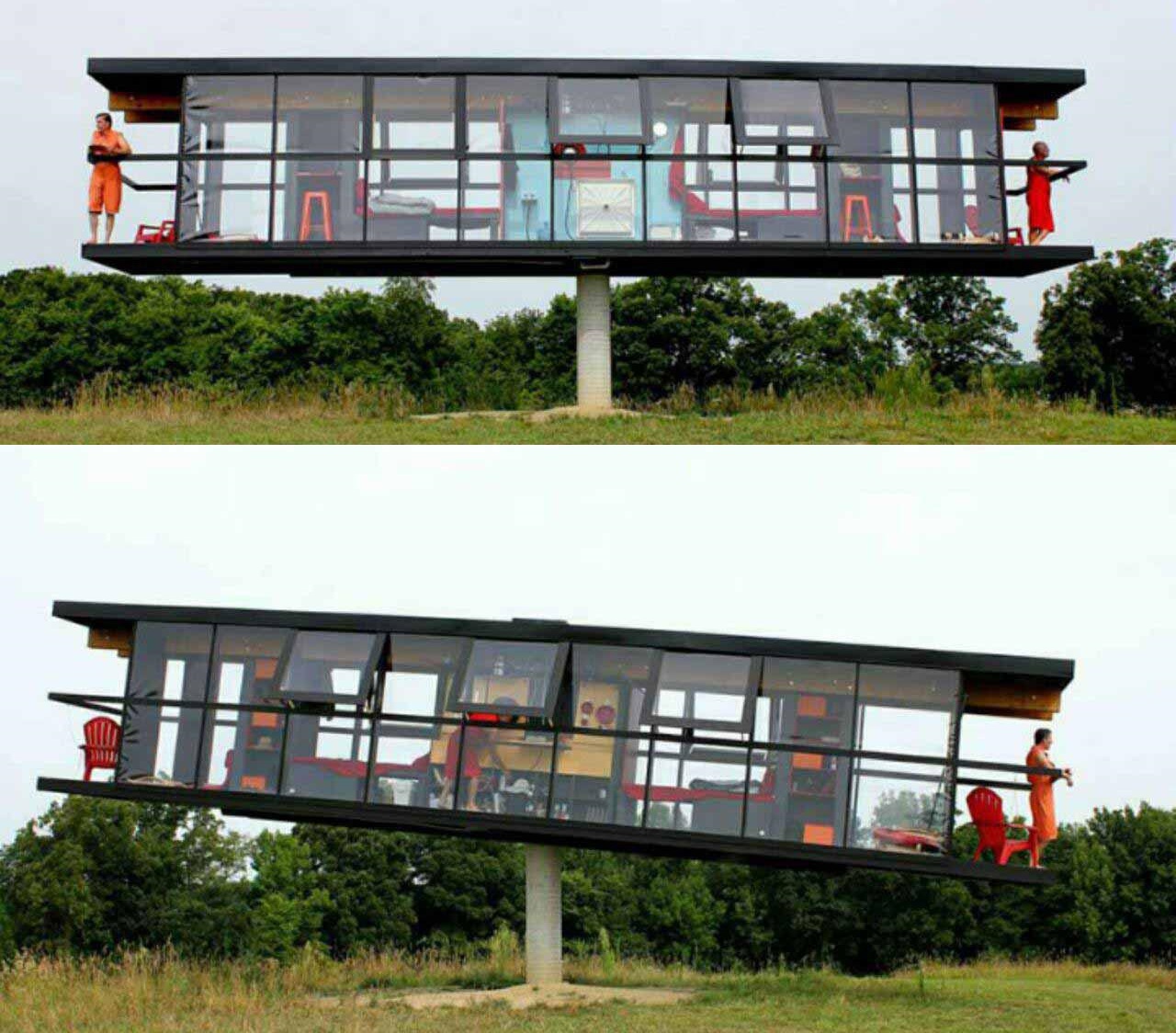 این خانه روی یک ستون بتنی طراحی شده که ۴٫۵ متر ارتفاع دارد با وزش باد می تواند به اندازه ۳۶۰ درجه بچرخد و با توجه به وزن کسانی که روی آن وجود دارند بصورت الاکلنگی حرکت کند.