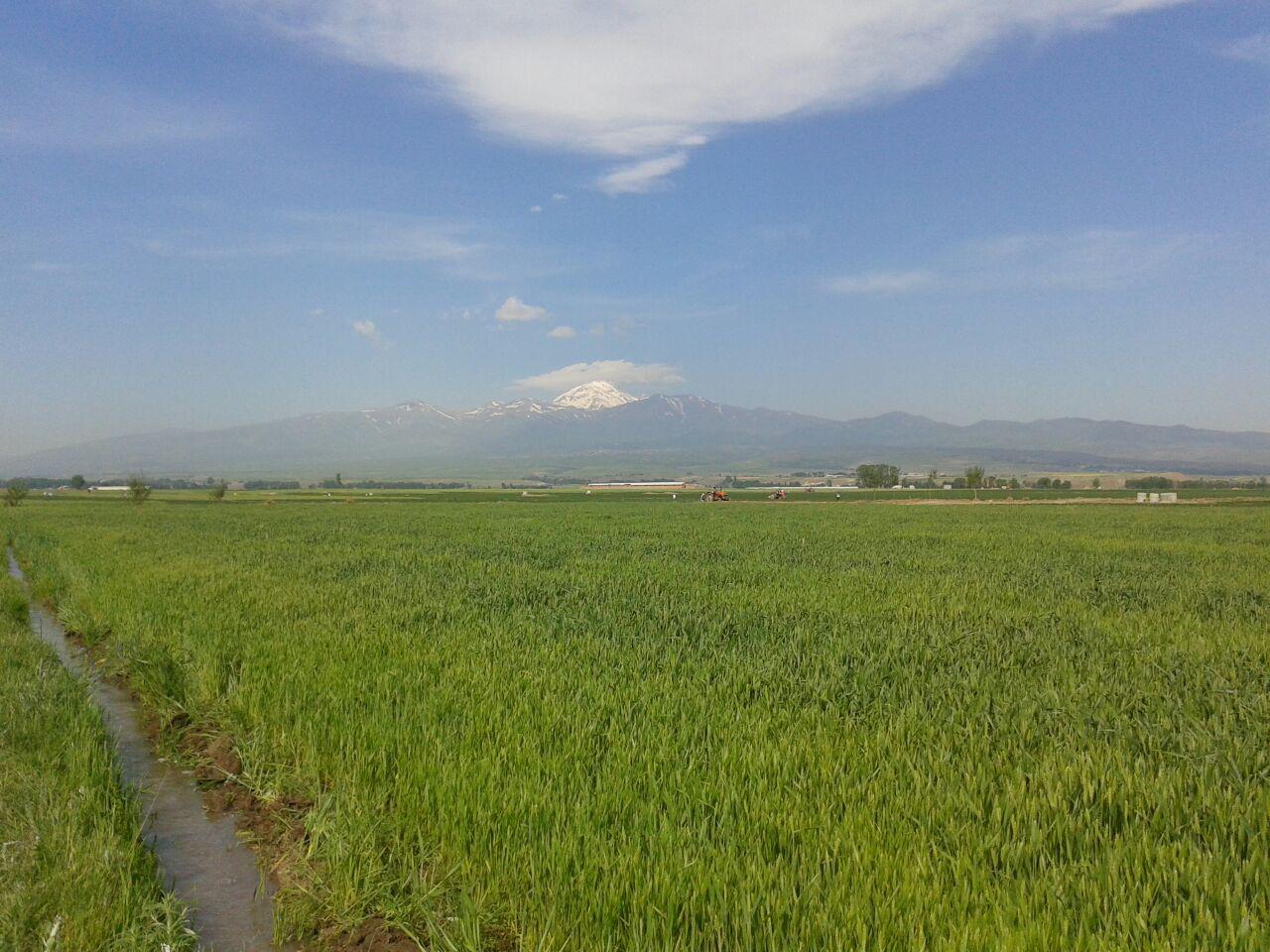 نمایی زیبا از سبلان در اواخر فصل بهار از مزارع ثمرین