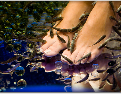 روش جديدي براي از بين بردن کک ومک، خشکي پوست، ترک پوست ، شفاف کردن پوست و بردن لکه ها ، التهاب های مزمن پوستی یا اگزماو..می باشد. روش اين گونه است که فرد داخل استخري با آب گرم مي رود که داخل آن ماهي هايي بدون دندان بين 3 تا 4 سانتيمتر به طرف پوست فرد رفته و شروع به مکيدن مرده پوست مي کنند و قسمت هایی از لايه رويي پوست که دچار ناراحتی است را خورده و به بازسازی آن کمک میکنند.