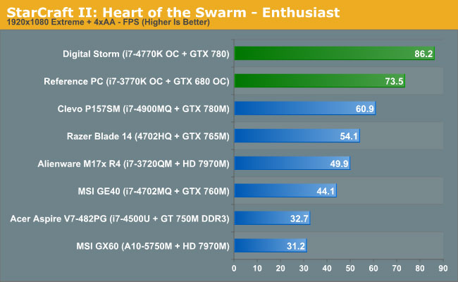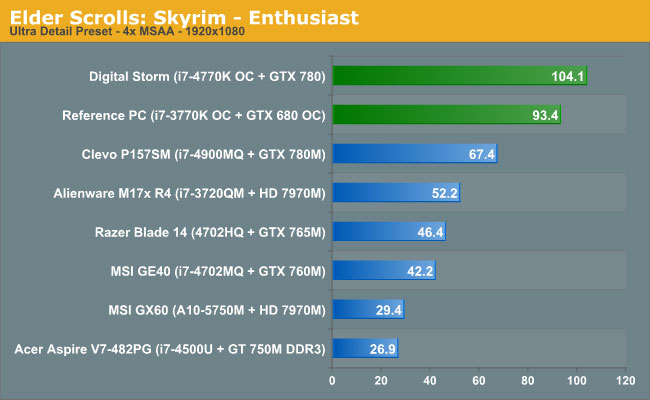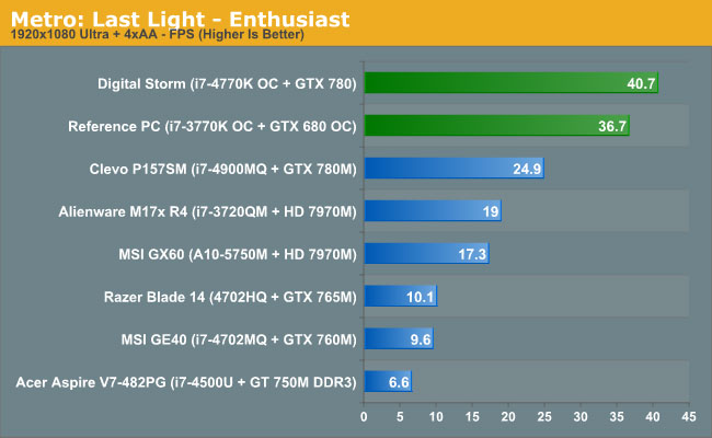 GTX 765M پردازندهی گرافیکی دیگریست که در دسکتاپهای امروزی که اخیراً تست کردهایم، چیزی به کندی آن ندیدیم! حتی GTX 660 هم حدود 2 برابر آن سریع است و مدل بعدی GTX 560 Ti که کمی کهنهتر است هم 50 درصد سریعتر از آن است.