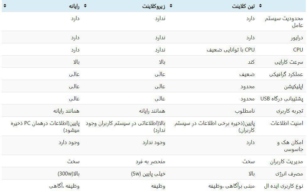 مقایسه بین زیرو کلاینت ، تین کلاینت و رایانه